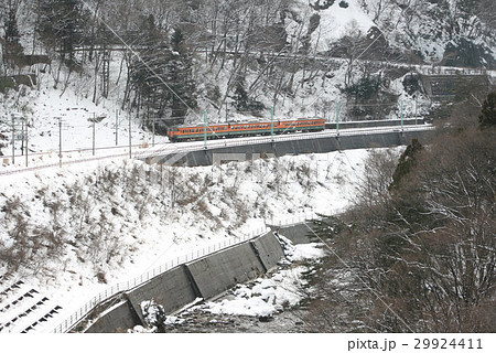 冬の諏訪峡を行く上越線115系電車