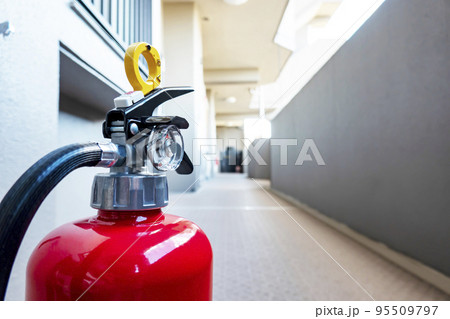 マンションの通路に設置された消火器