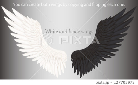 コピー&反転でそれぞれ両翼に出来る白い翼と黒い翼の片翼セット