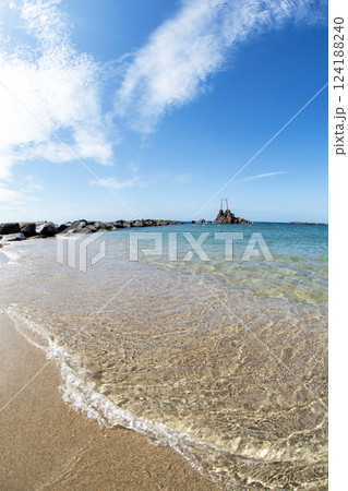 晴れた日の日本海、海の中の赤い鳥居さん(旧羽合町のハワイ海水浴場)