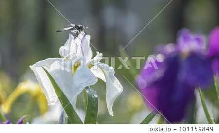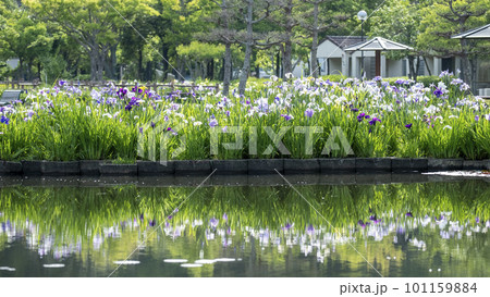 公園の水辺に咲く花ショウブ