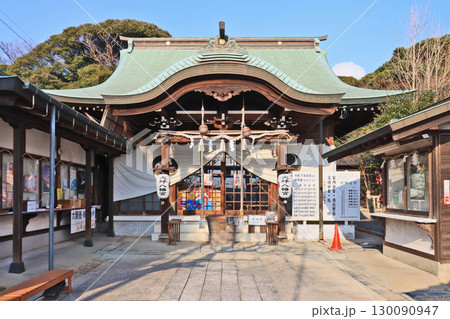 下関市羽山町の境内に入れ歯供養碑がある大坪八幡宮拝殿