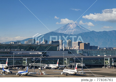 【羽田空港 第1ターミナルの富士山と飛行機】