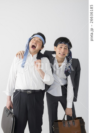 ネクタイを頭に巻いている酔っぱらい男性のイラスト