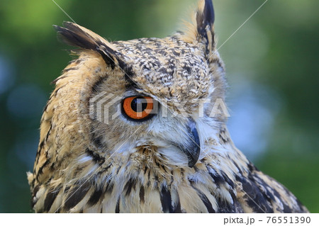精悍な目付きで何かを睨むベンガルワシミミズク[ フクロウ】