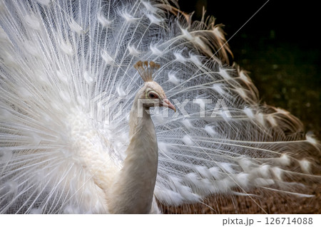 インドクジャクが突然変異で白くなったシロクジャク羽根