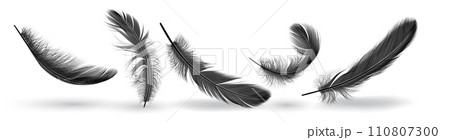 Black feathers. Isolated flying feathering, plumage of black bird vector illustration