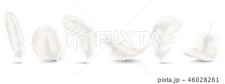 White flying realistic feathers. Bird feather composition, lightness effect of pillows or air. Vector decorative graphic elements