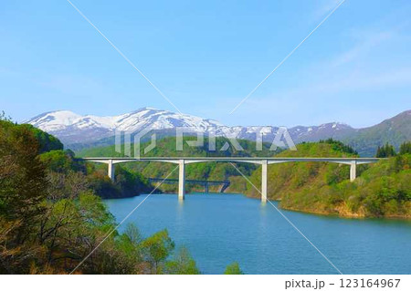 寒河江ダム 月山湖 大噴水 月山 西川町
