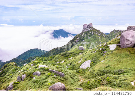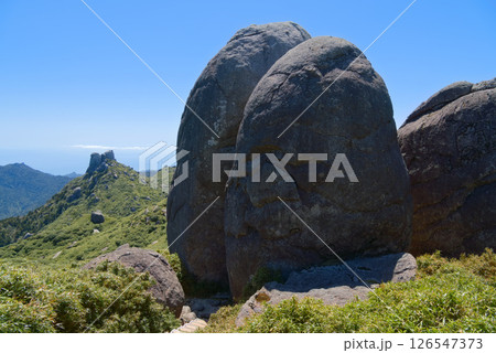屋久島、栗生岳の岩塊と翁岳