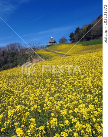 菜の花畑と展望台 翠波高原 (愛媛県四国中央市)
