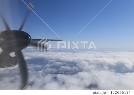 成層圏を飛ぶジェット旅客機内からの景色と翼