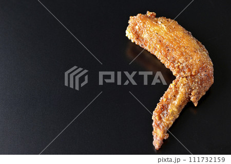 鶏の手羽先の唐揚げを黒背景で俯瞰撮影