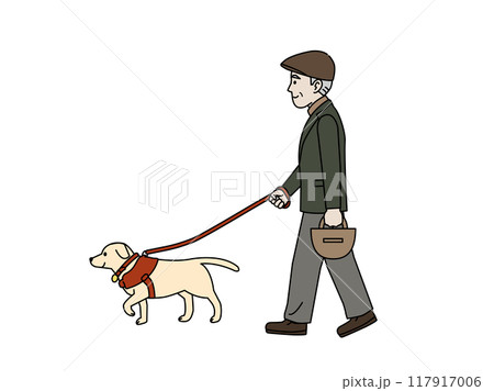 犬の散歩をする年配の男性のイラスト
