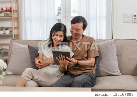 Retired Couple Enjoying a Relaxed and Comfortable Lifestyle in a Cozy Living Room Setting with Modern Decor and Warm Ambiance
