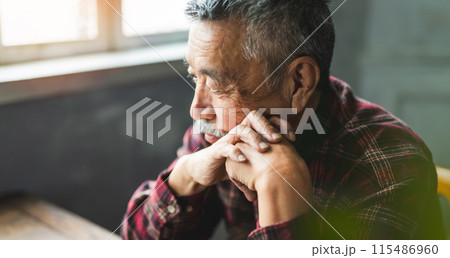 考え事をするシニア男性