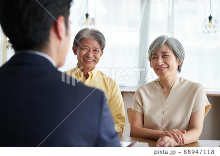 年配夫婦の家を訪れる営業の男性