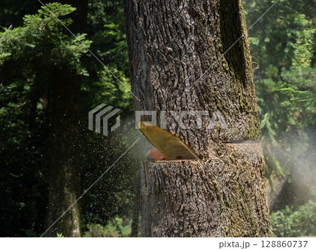 大木の伐採の瞬間