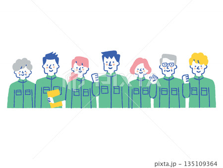 小学生からシニアまでのゼッケンまたはビブスをつけた人々 上半身 ボランティア セット イラスト素材
