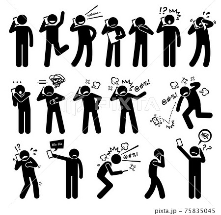 People Expressions Feelings Emotions While Talking on a Cellphone Stick Figure Pictogram Icons.