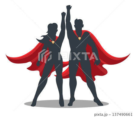 Male and female superhero silhouettes