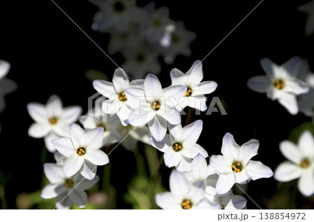 咲き誇るハナニラの花の手描きの水彩イラスト