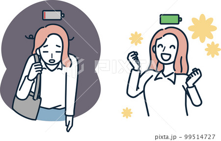 元気な女性と疲れ果てている女性 セット シンプルイラスト