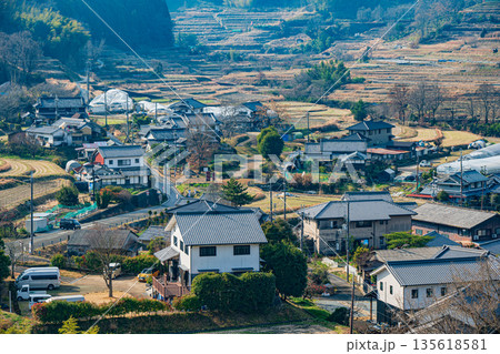 冬の明日香村の棚田風景 奈良県