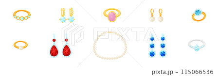 Shiny Necklace, Ring and Earrings as Jewelry Object with Gem Vector Set