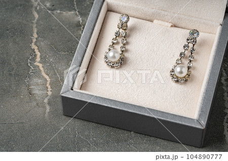 Elegant earrings, a pair of luxury earrings on white isolated background. Accessory earrings for women.
