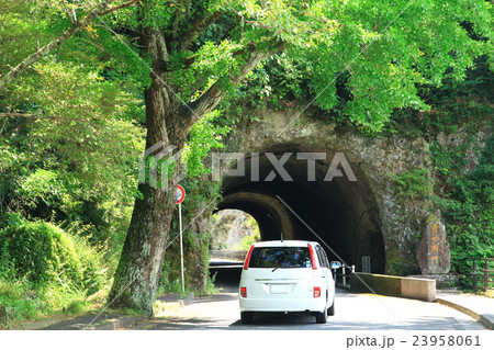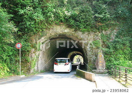 耶馬渓 夏の青の洞門 ドライブイメージ(白いミニバン) ①