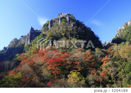 青空に映える壮大な耶馬渓 (紅葉風景)(田園風景)「大分県中津市本耶馬溪町」