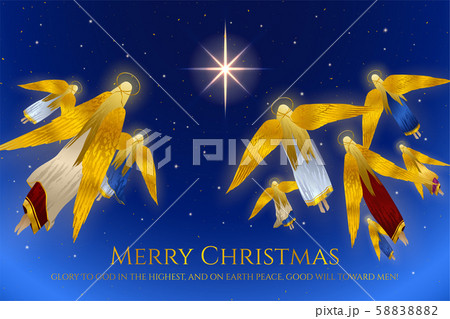 Christmas holiday background with angels. Holy night vector illustration. Night sky with Christmas star and starry sky (angels flight)