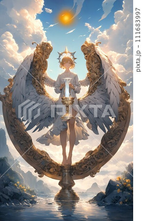 【タロット】Tarot 14 TEMPERANCE 節制 イラスト素材 (AI生成画像)
