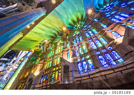 ガウディの建築のサクラダファミリアの聖堂内のステンドグラスの写真です