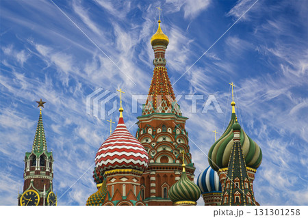 Temple of Basil the Blessed, Red Square, Moscow, Russia. Against the clouds