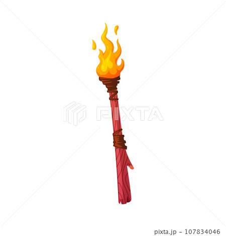 Torch with Burning Flame as Ancient Tool with Wooden Shaft Vector Illustration