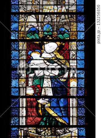 Stained glass window in the Santi Paolino e Donato church in Lucca, Tuscany, Italy