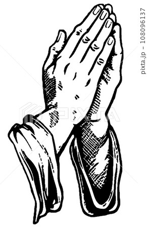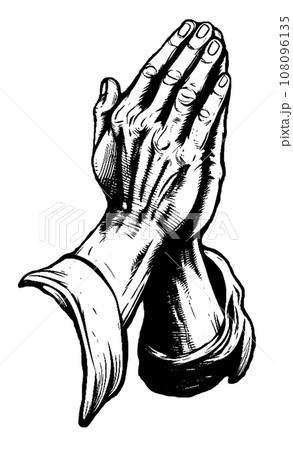 Hand Drawn sketch Illustration of Praying hands on transparent background. PNG. AI-generated