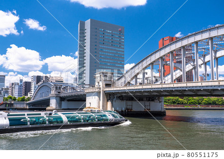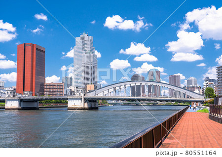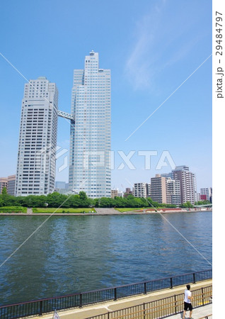 東京 中央区の都市風景 隅田川と聖路加ガーデンタワー