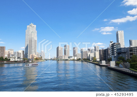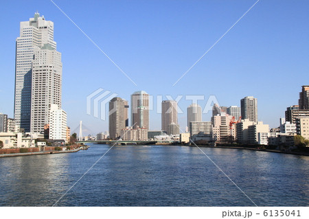 東京 中央区の都市風景 隅田川と聖路加ガーデンタワー