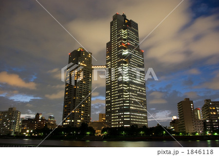 都市夜景 隅田川と高層ビル群の夜景
