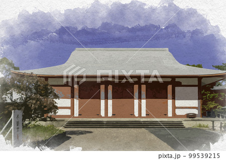 水彩画風 薬師寺 聚寶館 奈良県奈良市
