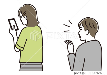 スマホ見る男性にイライラする女性のイラスト