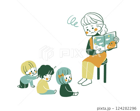 絵本の読み聞かせ中に集中力が散漫になる子どもたち-4色