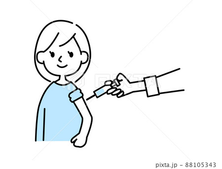 予防接種を受ける女性 笑顔 ベクターイラスト素材 シンプルタッチ