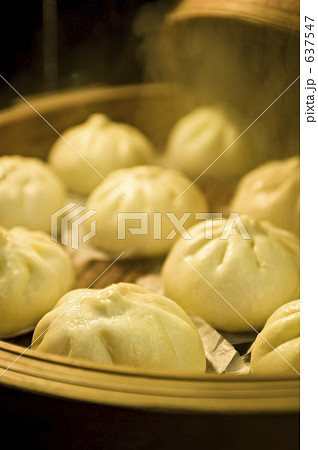 肉まん、豚まん 中華まん 湯気の出る中華饅頭