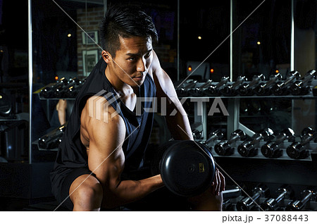シンプルな人間のアイコンシリーズ 「ダンベルと鍛える人」