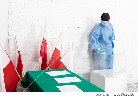 Disinfection of the room and the ballot box just before the election of the President of Poland.