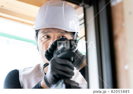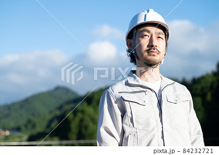 お任せできそうな真剣なまなざしの作業服姿の男性 コピースペースあり